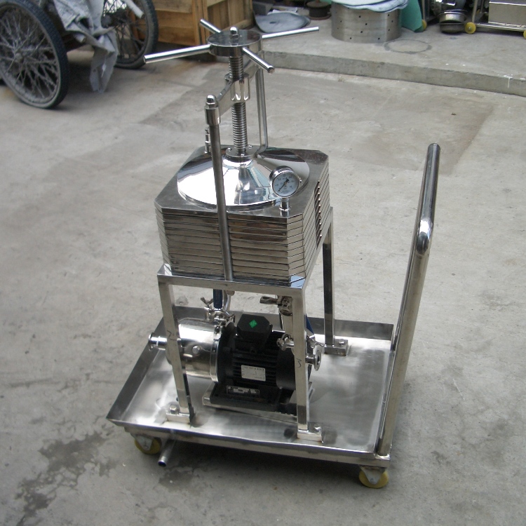 過濾器由多層濾板組成,過濾面積大,流通量大;且可根據(jù)被濾溶液之不同生產(chǎn)工藝(初濾、脫活性碳、除微粒、半精濾、精濾)要求,更換不同濾膜、及根據(jù)用戶生產(chǎn)流量之大小可適當(dāng)減少或增加濾板層數(shù),使之適合生產(chǎn)之需要,因此本機(jī)具有一機(jī)多用適用范圍廣之特點(diǎn);濾板采用平面螺紋網(wǎng)狀形,結(jié)構(gòu),不變形,容易清洗,能有效地增長各種濾膜的使用壽命,從而降低和節(jié)約生產(chǎn)成本,本機(jī)可選配不銹鋼泵,其配用電機(jī)小,耗電省。機(jī)座下裝有膠輪,操作方便,移動靈活,可供移動使用。