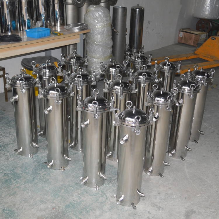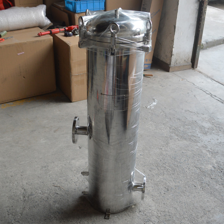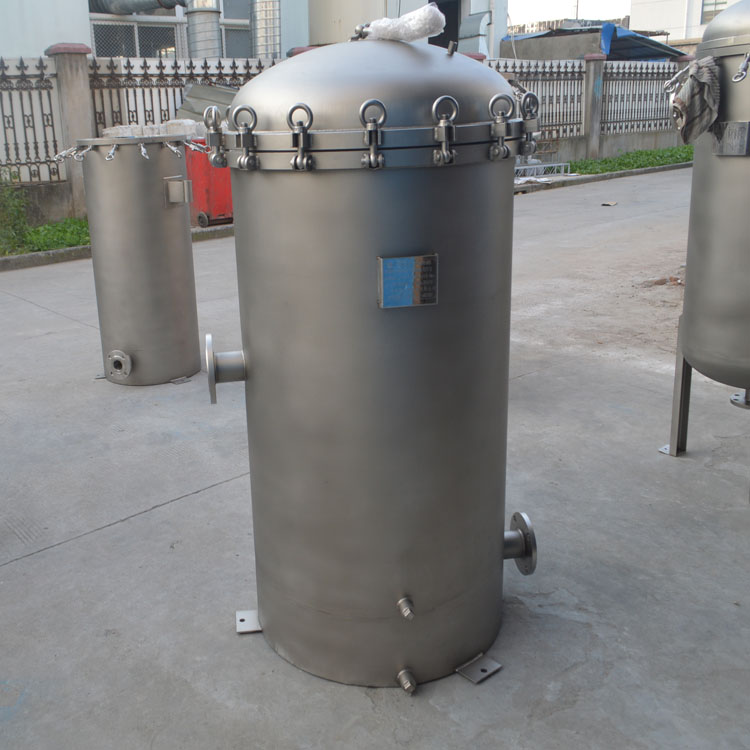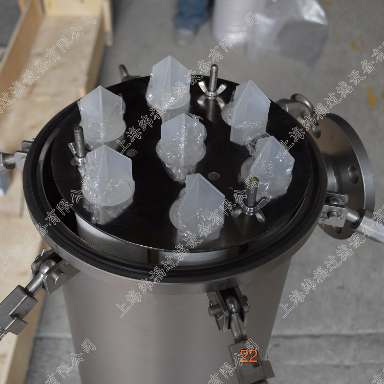 保安過濾器主要由過濾外殼,過濾濾芯等組成,過濾外殼大部分由304不銹鋼材料組成,如用在耐酸堿等特殊場合則可采用316L不銹鋼做外殼??煞譃榉ㄌm式與卡箍式,而法蘭式外殼主要用在過濾流量較大的場合。過濾濾殼中間裝的過濾濾芯主要以PP過濾棉芯為主,有些場合也可選用線繞濾芯或活性炭濾芯。濾芯的安裝數目可從一支到幾十支不等,主要是根據處理量的大小來確定。